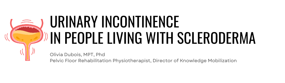 Urinary incontinence is defined as the involuntary loss of urine (Haylen et al., 2010). It affects 49% of women and 15% of men living with scleroderma (Sanchez et al., 2016). Several types exist, but the two most common are stress urinary incontinence and urgency urinary incontinence